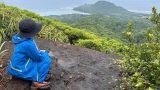 54座目 10/21 本部半島カルスト地域内にある、円錐カルスト丘群の一つ、カンスイムイへ登りました。ここも、鋭利な岩山です。本部ふるさと歩道の案内版にも山名があります。何度か訪れましたが、登山口が探せず苦労しました。他のブログも参考に登山入り口見つけました。山頂からは展望が素晴らしかったです。