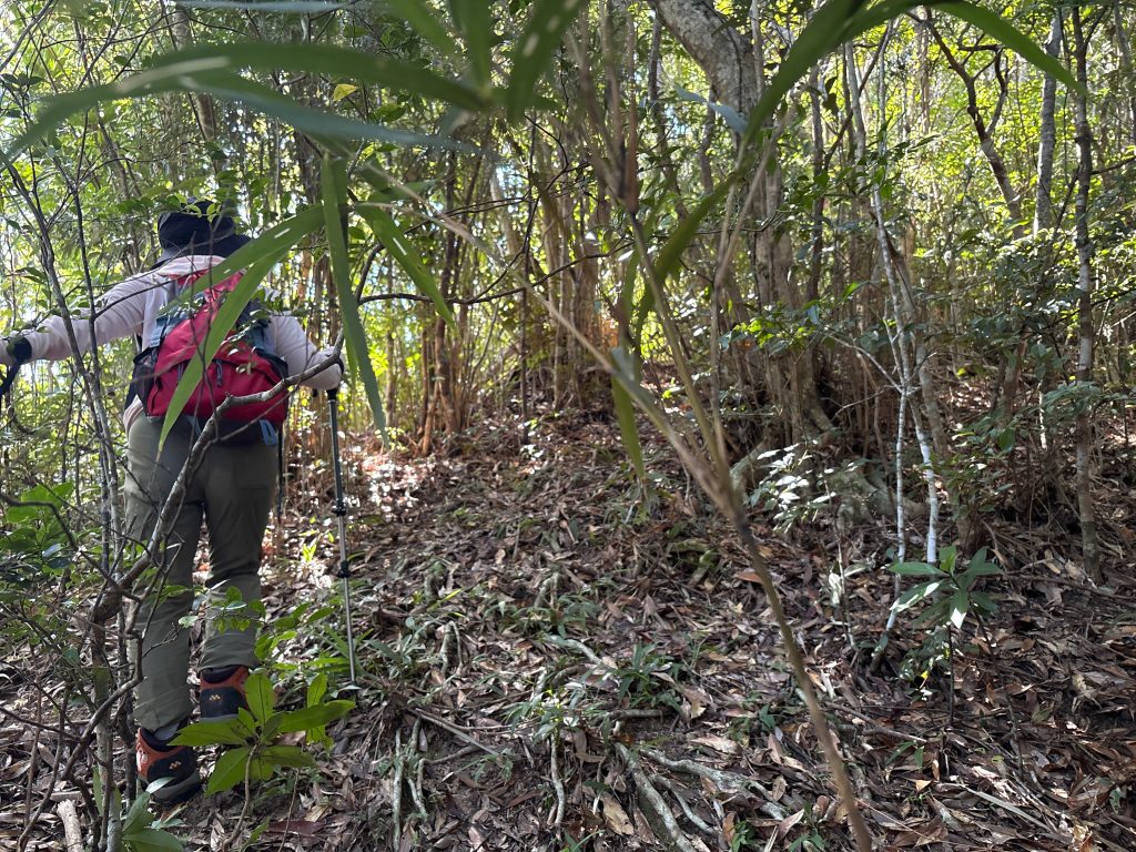 他のサイトから情報を経て、漢那岳海抜0mからのチャレンジ、しかし7合目付近まではアスファルト道をひたすら登り、8合目付近からやっと土の道。明治山までの縦走も予定していたが、あまりの暑さに下山しました。須久山のダメージがあり、200mの低山をマイペースで4時間を要しました。( ゚Д゚)