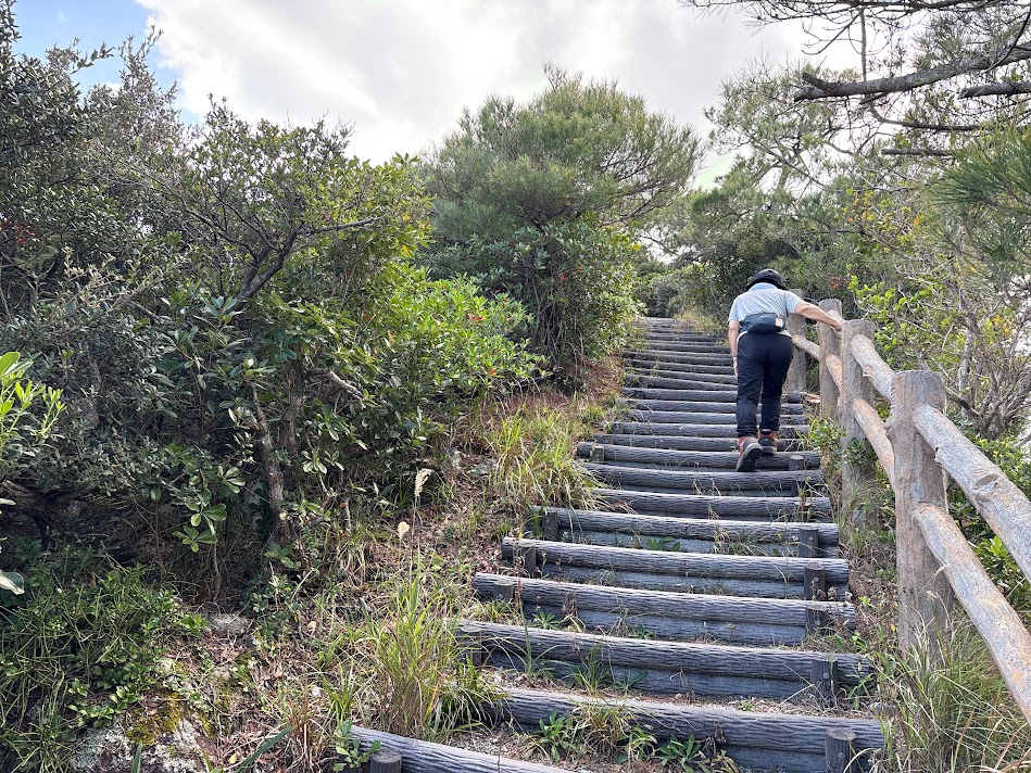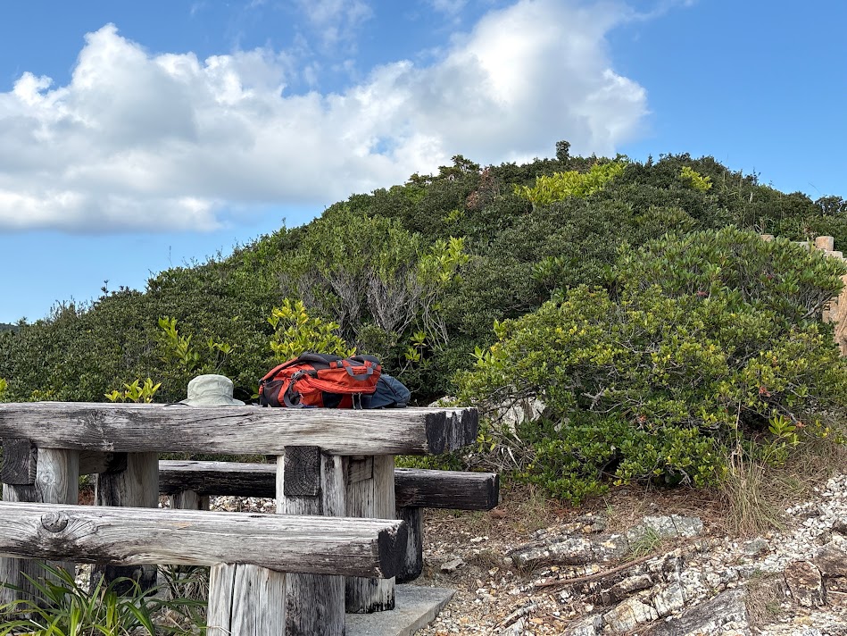 山並みの美しい伊平屋島、今回は体力面もあり、二座のみ、一つは岩山の虎頭岩登ってみました。標高が分からず大体64mくらいか、伊平屋島の玄関先にあり、ウバメガシの群落や山頂には休憩できるベンチもありました。(‘ω’)ノ