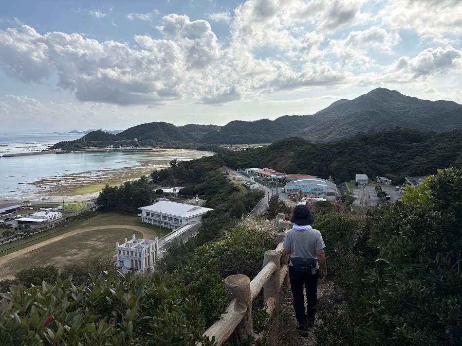 伊平屋ムーンライトマラソンイベント会場の真ん前にあります。伊平屋島を玄関口にあり、運動場側からも登れます。展望台の東屋までは車でも行くことが出来ます。運動場の駐車場に止めてウバメガシの群落を見ながら登るといいかもです。頂上からは四方見渡せ、山並みもきれいでした。(‘ω’)ノ